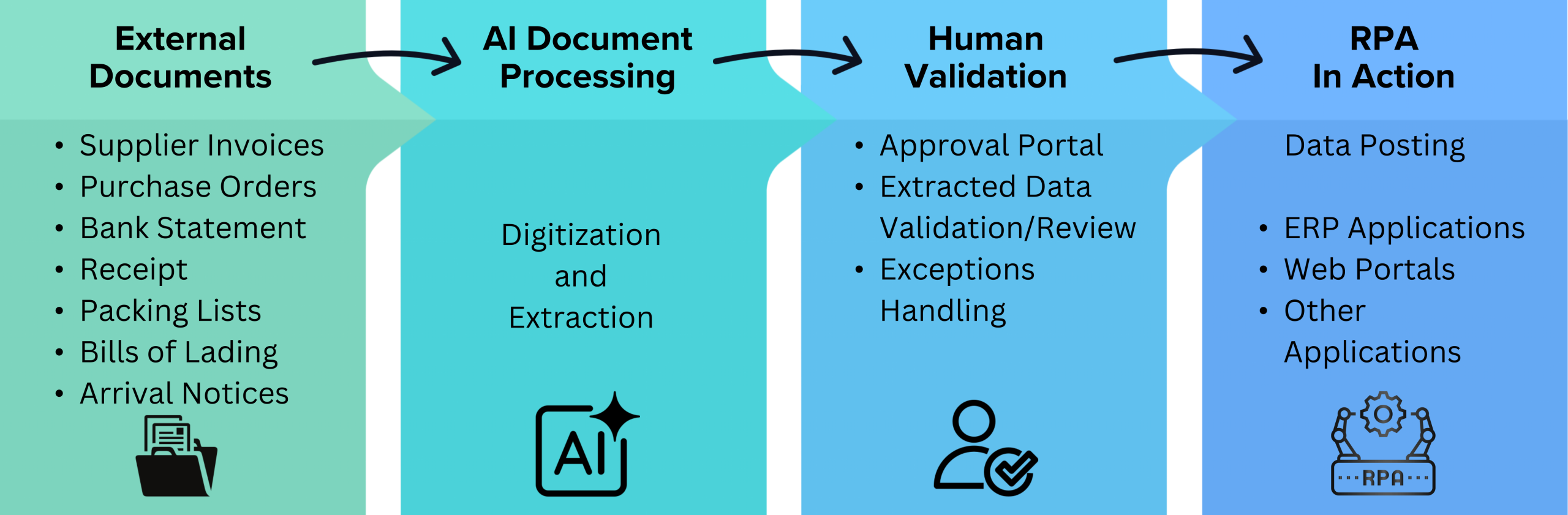 | AI-Powered Extraction | Automatically reads and captures data from invoices, purchase orders, receipts, and more. |